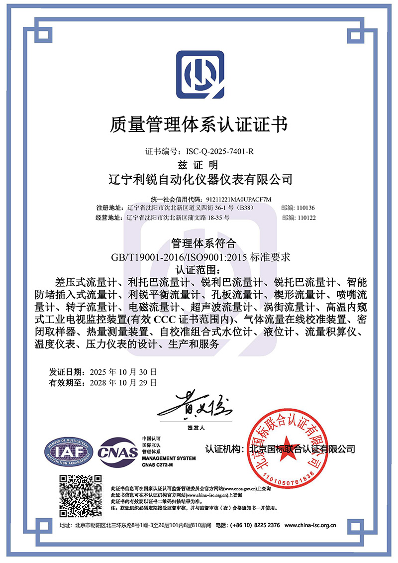 辽宁利锐自动化仪器仪表有限公司,成立于2017年,是一家专注于自动化智能仪表技术研发、产品制造、销售服务为一体的国家高新技术企业。公司生产的全系产品已通过ISO9001 国际质量管理体系认证,生产基地坐落于中国最重要的以装备制造业为主的重工业基地,素有“一朝发祥地,两代帝王都”的国家历史文化名城---沈阳...